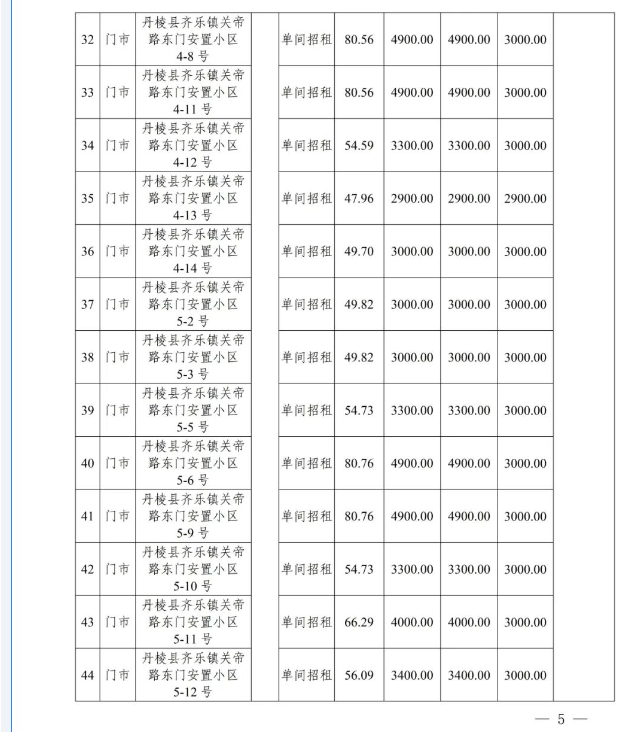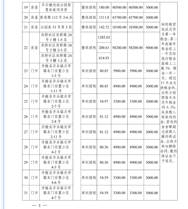 丹棱縣58處國有資產3年租賃權拍賣公告