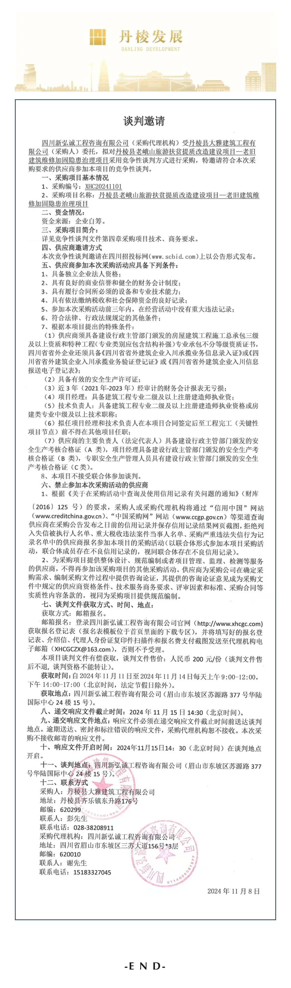 丹棱縣老峨山旅游扶貧提質(zhì)改造建設(shè)項目——老舊建筑維修加固隱患治理項目談判邀請公告