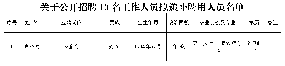 附件:關(guān)于公開招聘10名工作人員擬遞補聘用人員名單