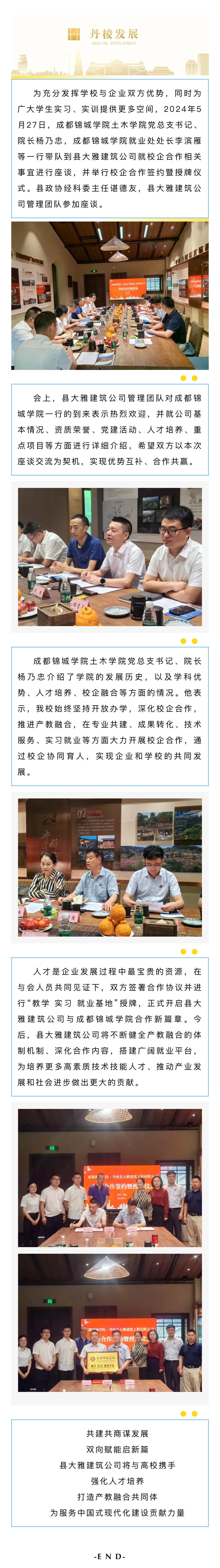 【縣大雅建筑公司】校企合作聚英才 育人筑夢創(chuàng)未來 | 縣大雅建筑公司與成都錦城學(xué)院開展校企合作簽約暨授牌儀式