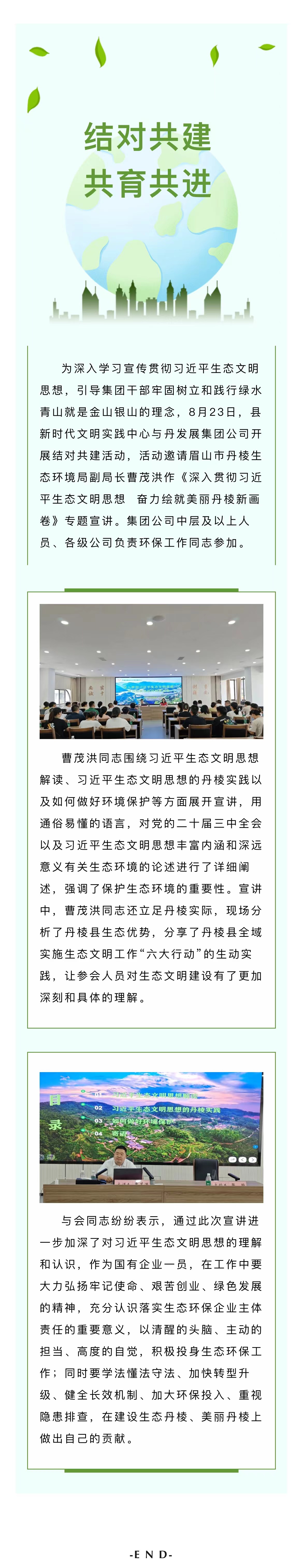 結(jié)對共建,共育共進(jìn)|縣新時(shí)代文明實(shí)踐中心與丹發(fā)展集團(tuán)公司舉辦習(xí)近平生態(tài)文明思想專題宣講活動(dòng)