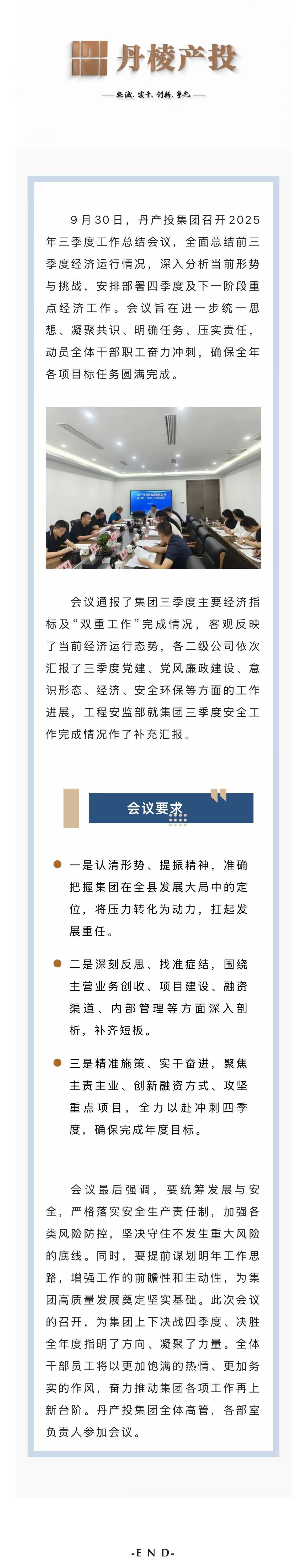 錨定目標 精準施策 全力沖刺全年任務丨丹產(chǎn)投集團召開2025年三季度工作總結會議