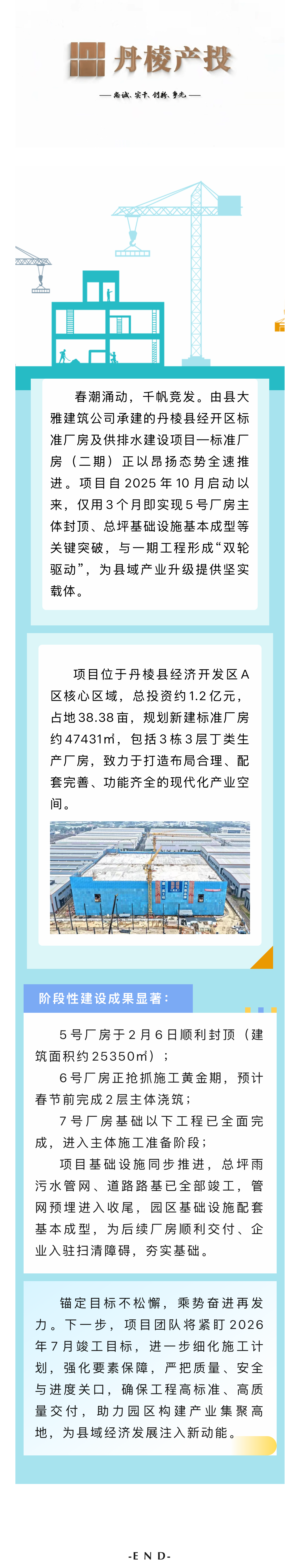 【縣大雅建筑公司】筑跡:乘勢而上再提速 丹棱縣經開區(qū)標準廠房及供排水建設項目—標準廠房(二期)全面攻堅​