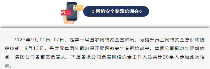 【網(wǎng)絡安全宣傳周】 丹發(fā)展集團公司開展網(wǎng)絡安全專題培訓會
