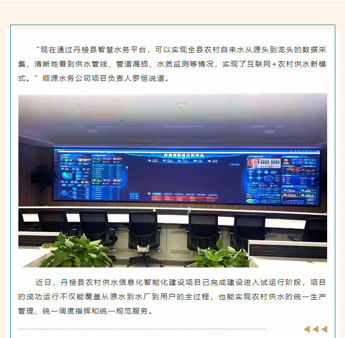 科技賦能 “智水”有方——丹棱縣農(nóng)村供水信息化智能化建設(shè)項目建成投用